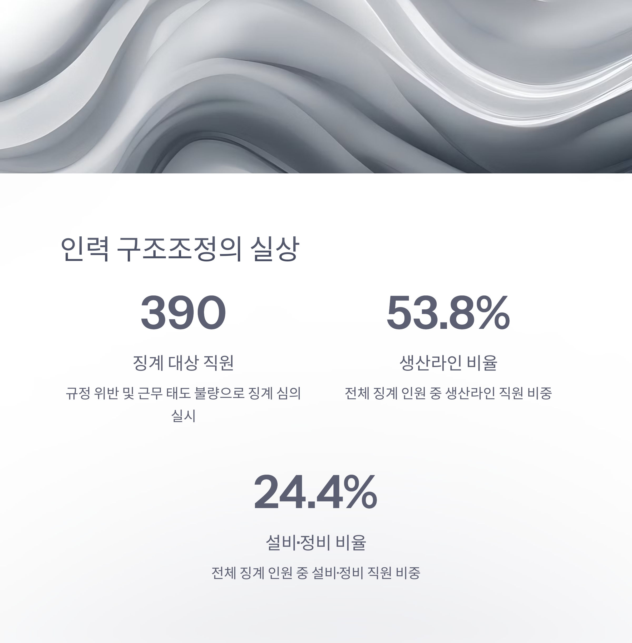 전체 노령 인력 퇴직으로 인한 생산 공백을 징계 구조개편으로 메우고
