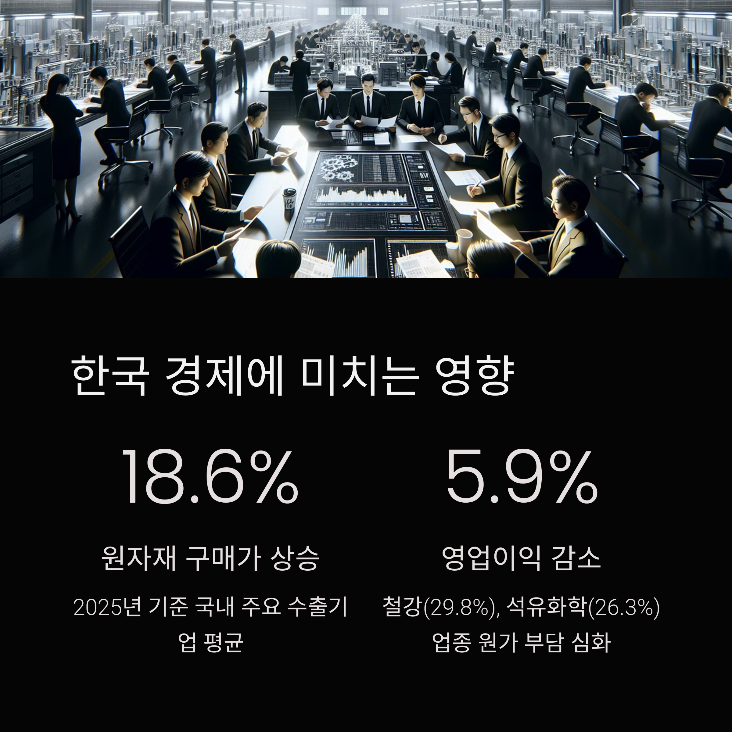 - 반도체, 자동차, 전기전자, 석유화학, 철강 등 수출 주력 업종의 매출원가 중 원자재 비중이 30~50%에 달해, 가격 변동에 민감하게 반응합니다.